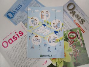 写真や内容、レイアウト等の調整後、高仁会のパンフレットや広報誌のオアシスを発行しています。