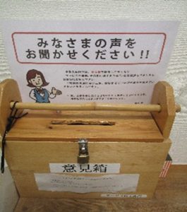 「みなさまの声」の回収箱を設置しています。要望やご意見がございましたら、お気軽にご利用ください。
